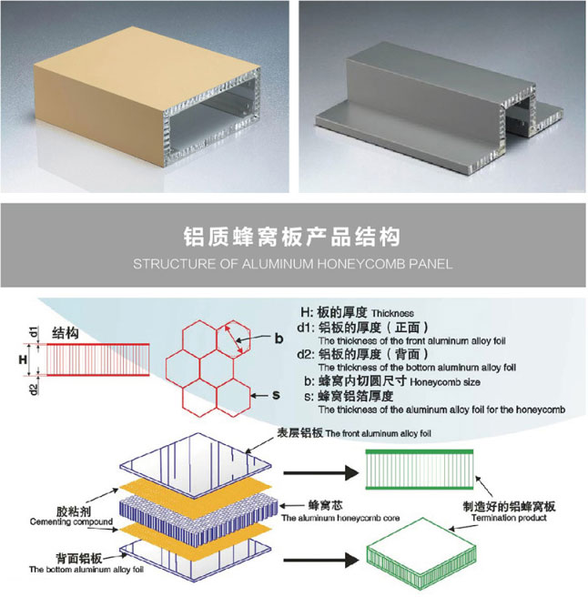 鋁蜂窩鋁單板是采用經(jīng)氟碳噴涂處理的耐候性極佳的高強(qiáng)度合金鋁板作為面、底板,中間是鋁蜂窩芯,經(jīng)高溫高壓復(fù)合而成的蜂窩式夾層結(jié)構(gòu)板材。具有質(zhì)輕、強(qiáng)度高、鋼性好、隔音、隔熱等特點(diǎn)。鋁蜂窩板是航空、航天材料,目前已逐步發(fā)展應(yīng)用于民用領(lǐng)域,如建筑業(yè)、交通工業(yè)、廣告牌等行業(yè)。本公司引進(jìn)先進(jìn)的全自動(dòng)連續(xù)復(fù)合生產(chǎn)線,采用冷膠和熱復(fù)合相結(jié)合技術(shù),使產(chǎn)品達(dá)到先進(jìn)水平,同時(shí)豐富多彩的造型板能充分實(shí)現(xiàn)建筑師完美的創(chuàng)意。