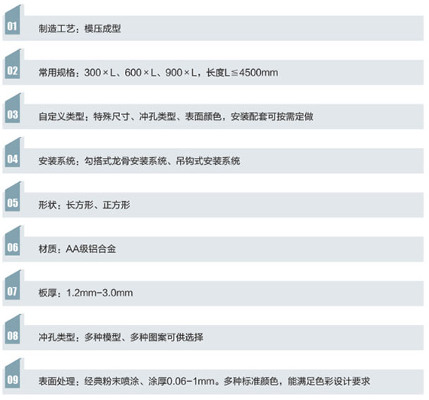 搭鋁單板天花板面平整,一般為單向平行龍骨勾搭式結(jié)構(gòu),板與板之間的拼接時(shí)通過龍骨有次序搭折在一起的,板邊獨(dú)特的勾搭設(shè)計(jì),能很好的控制板與板之間的活動性,從而確保了板與板之間的縫隙風(fēng)嚴(yán)密平整拼縫細(xì)密,棱線分明,不同寬度可實(shí)現(xiàn)多種組合。